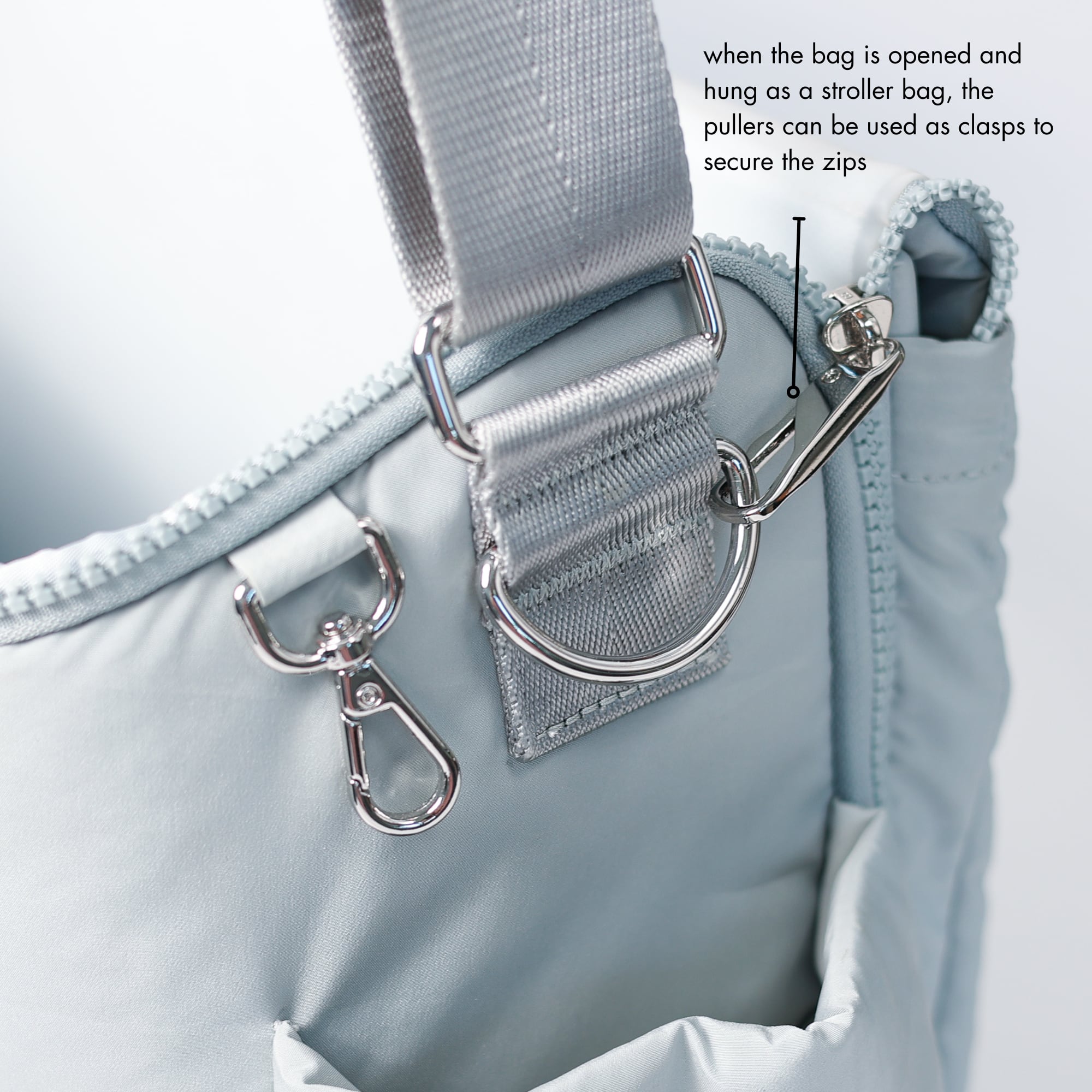 ・ベビーカー/ペットカートに掛けた時にファスナーを固定できる特別デザインのジッパープラー